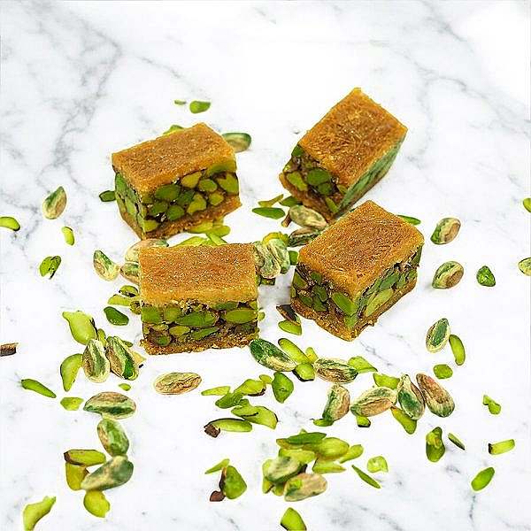 Zutaten: Konafa, Pistazien, Butterschmalz, Wasser und Zucker